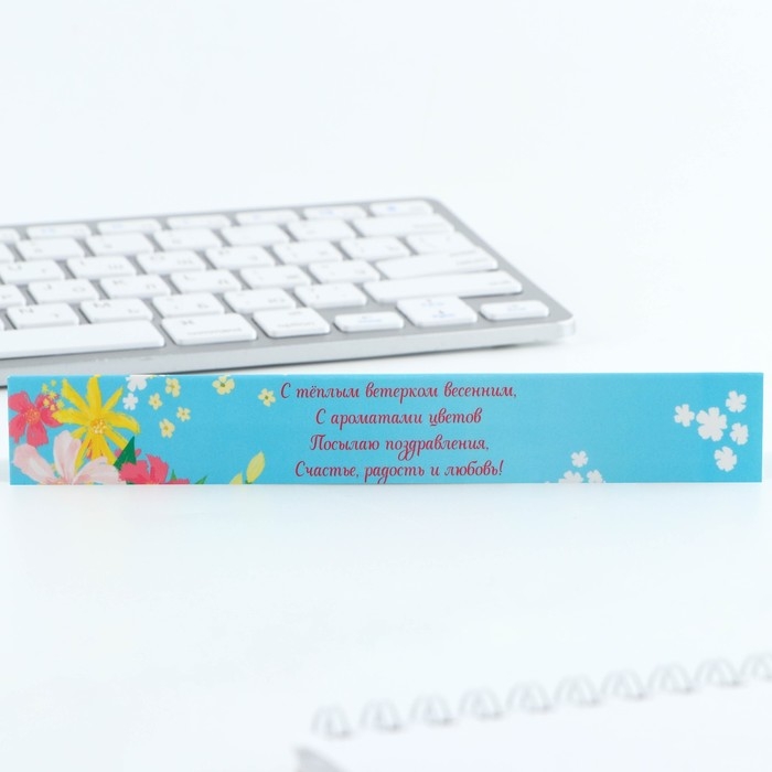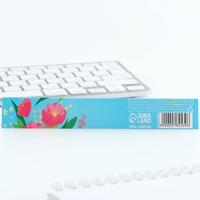Ручка шариковая синяя паста, пластиковая с цветком "С праздником весны!"