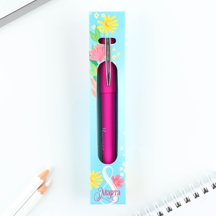 Ручка шариковая, синяя паста, 0.7 мм, корпус пластик «8 марта»