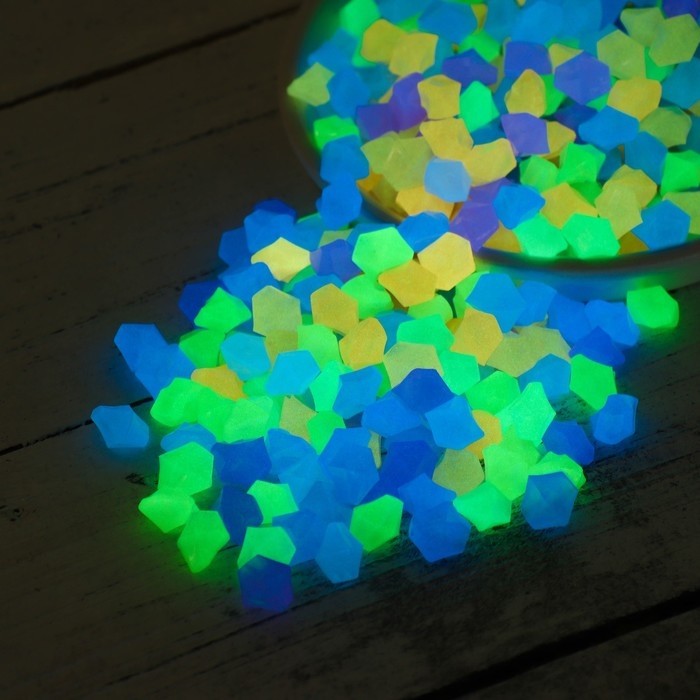 Обращаем внимание, что светящаяся крошка не являются источником света, она лишь даёт небольшое декоративное свечение. Поэтому, если вы ищите декор для аквариума, крошка для декора станет идеальным решением! Выполнена из полистирола и не имеет запаха. Станет отличным и запоминающимся подарком!