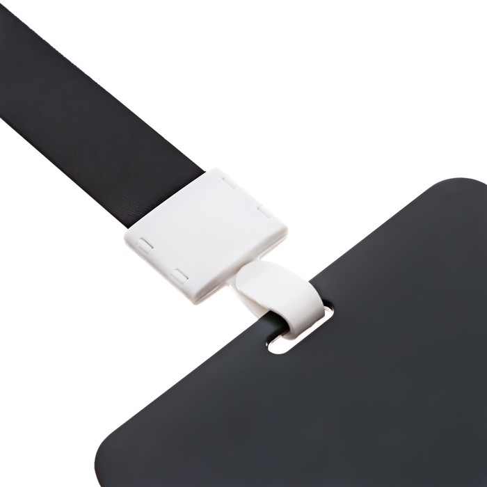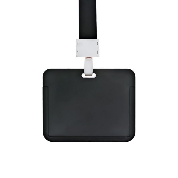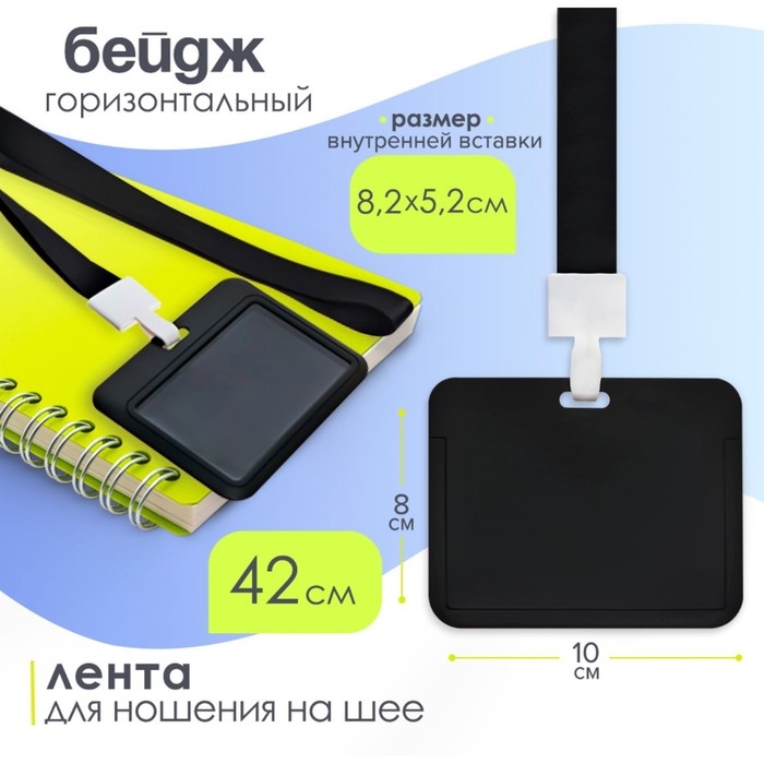 Бейдж горизонтальный, внешний, 100 х 80мм, внутренний 52 х 82мм, лента 42 см, Черный
