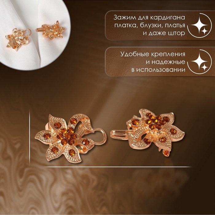 Зажим для кардигана - изысканный аксессуар, в том числе на поверхности платья, шали или свитера, данный элемент можно использовать даже для штор. Зажимы актуальны как в повседневном так и праздничном образе, добавляют очарования вашей одежде при сочетании различных нарядов.