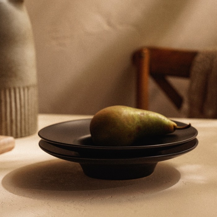 Черный цвет тарелок придает им современный и стильный вид, а гладкая текстура и матовая поверхность создают приятные тактильные ощущения. Эти тарелки станут прекрасным акцентом на вашем столе, дополняя как повседневную, так и праздничную сервировку.