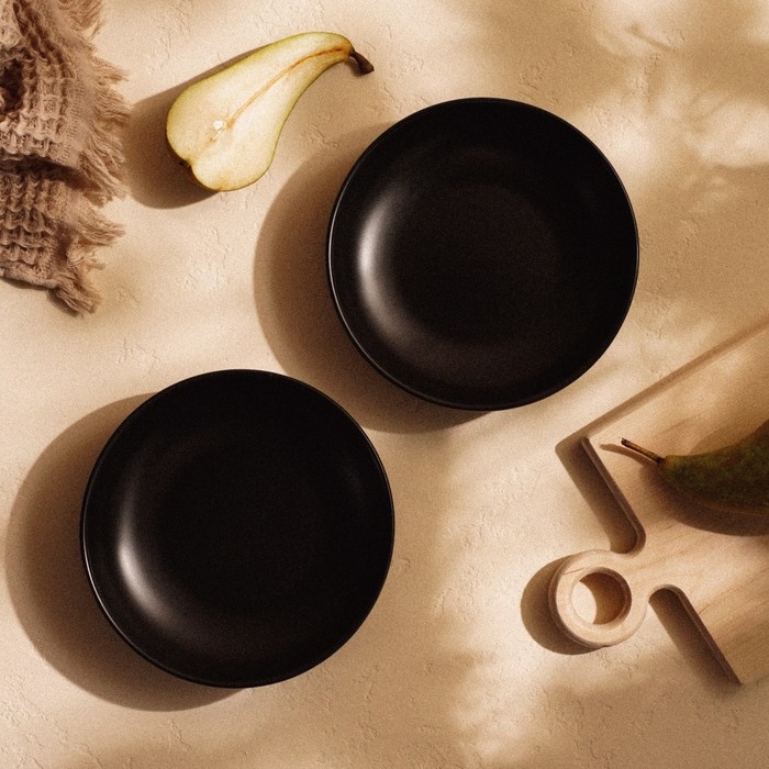 Набор тарелок фарфоровых глубоких SL Home «Дарк», d=18,5 см,цвет чёрный