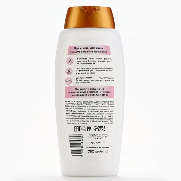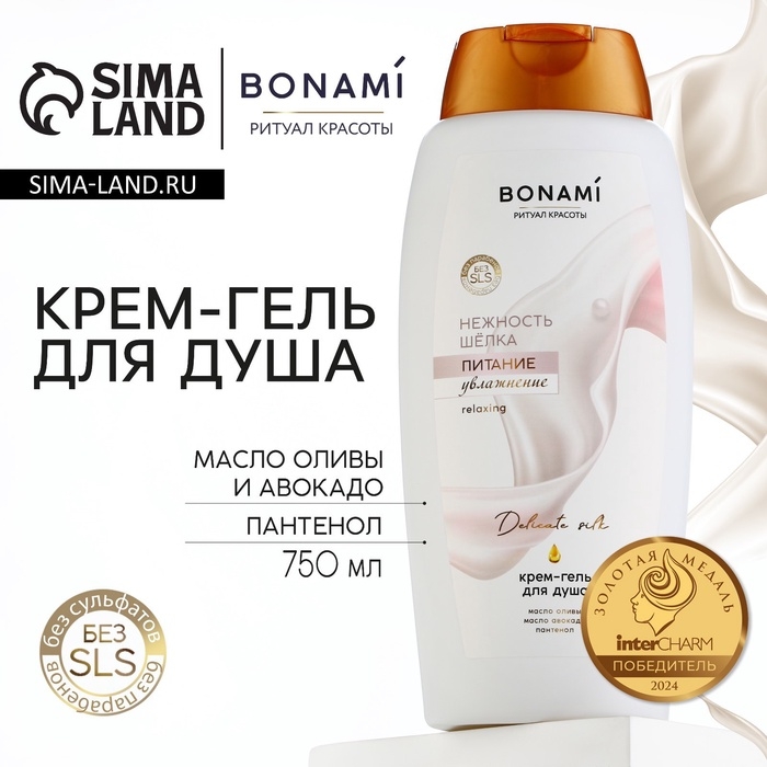 Гель для душа женский с пантенолом, 750 мл, аромат нежности шёлка, BONAMI
