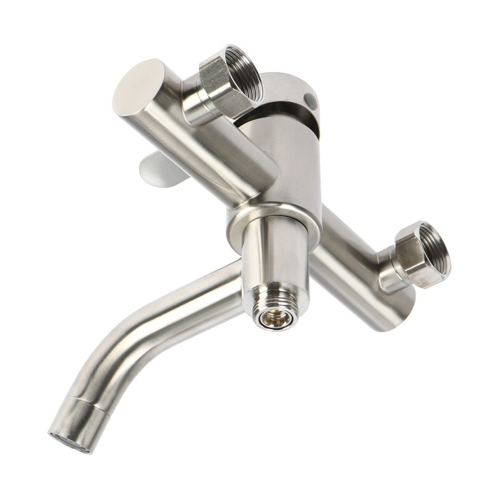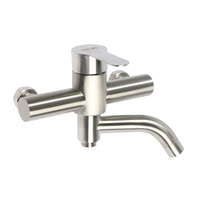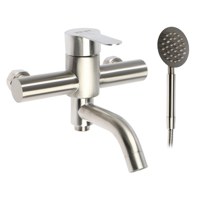 Смеситель для ванны ZEIN Z3489, изогнутый излив, душевой набор, нержавеющая сталь, сатин