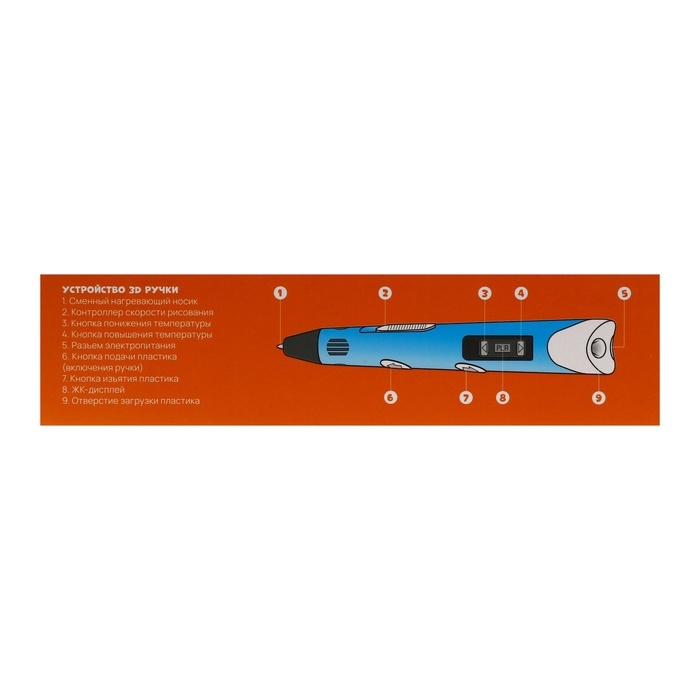- 3D-ручка с диаметром сопла 0,7 мм и двумя режимами работы;