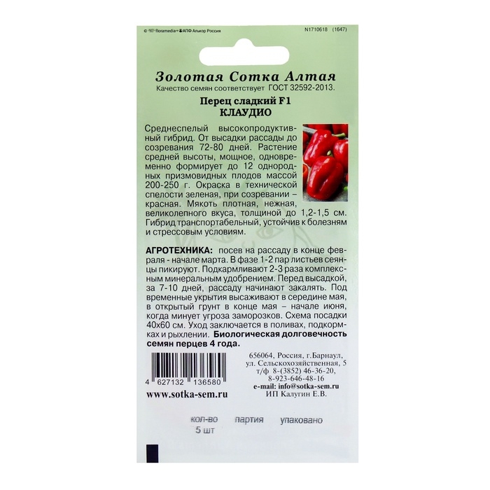 Семена Перец "Клаудио F1", 5 шт