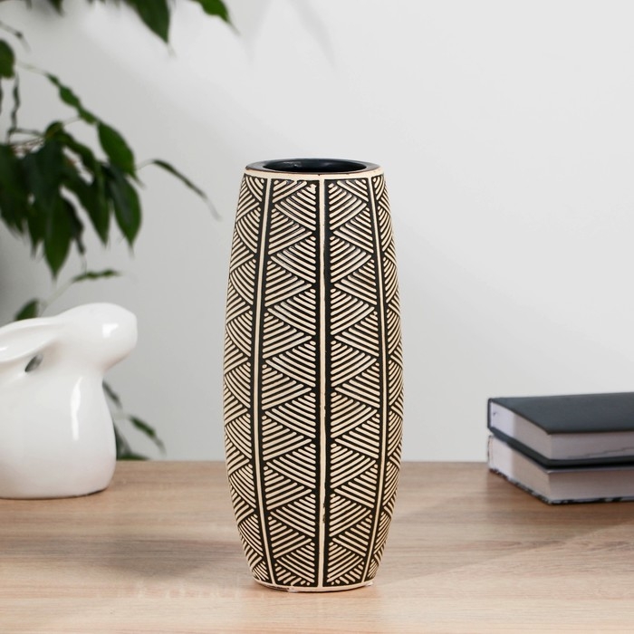 Ваза керамика настольная "Флоранс" 25 см, бежево-чёрный