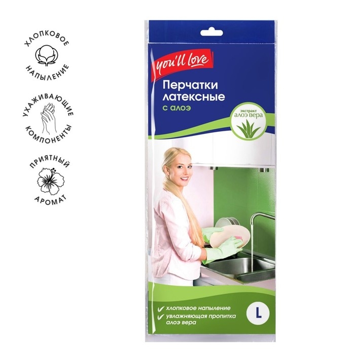 Латексные перчатки с пропиткой алоэ, L, 35х13.5х3 см