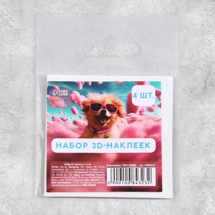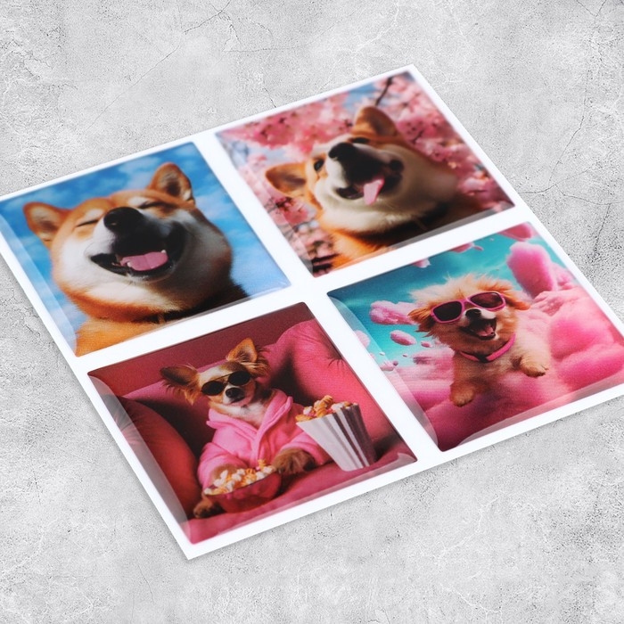 Объёмные 3D стикеры на телефон «Пёсики», 4 шт, 3 х 3 см