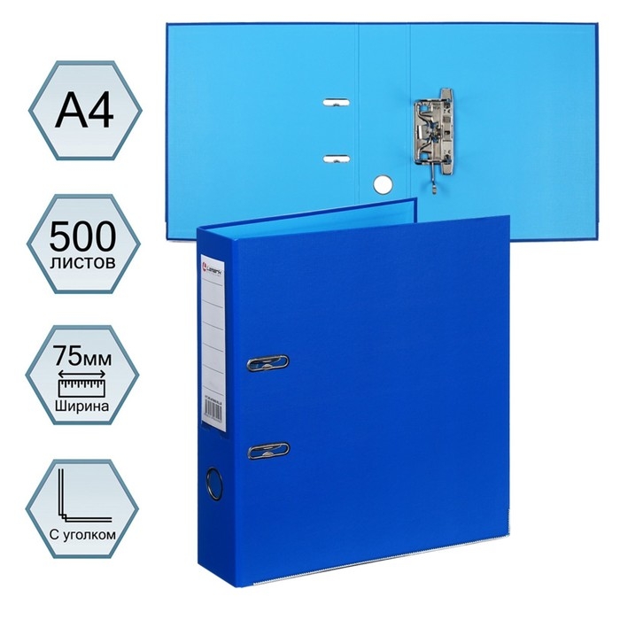 Папка-регистратор А4, 75 мм, Lamark, ПВХ, двухстороннее покрытие, металлическая окантовка, карман на корешок, собранная, синий/голубой