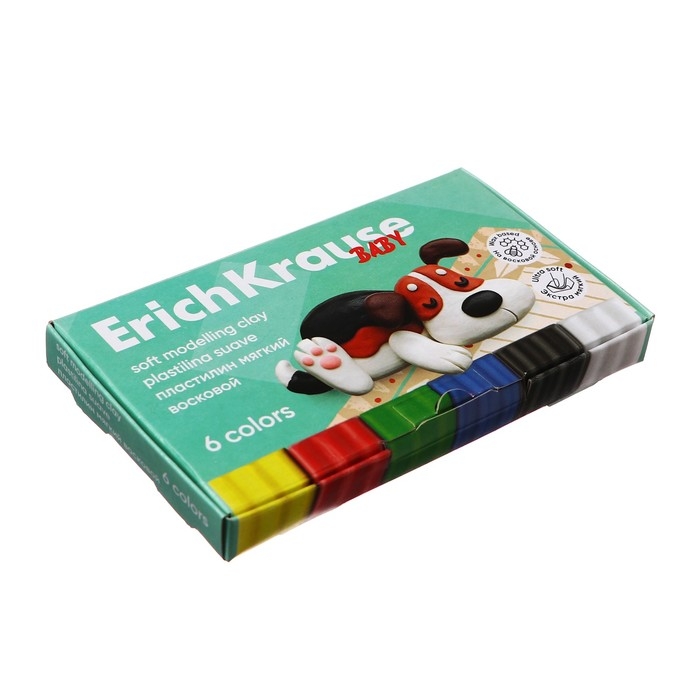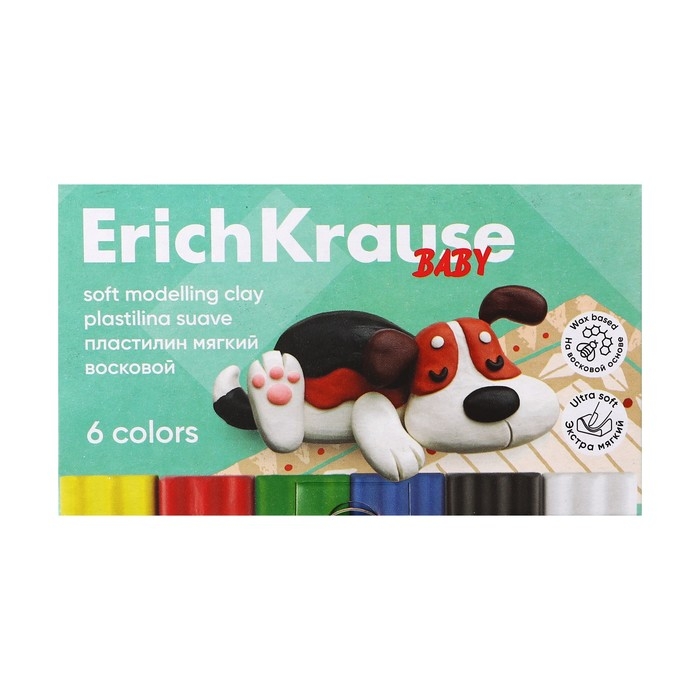 Пластилин мягкий (восковой) 6 цветов, 78 г, ErichKrause "Baby", со стеком, на растительно основе, с Алоэ Вера , европодвес