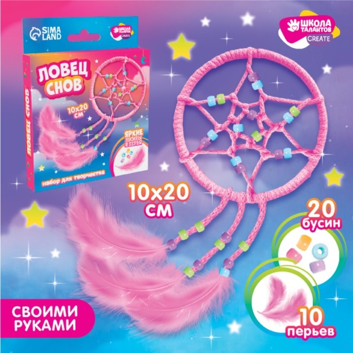 Такой набор позволит ребёноку самостоятеньно сделать ловец снов, готовый амулет станет чудесным украшением дома и создают особую уютную атмосферу в интерьере.