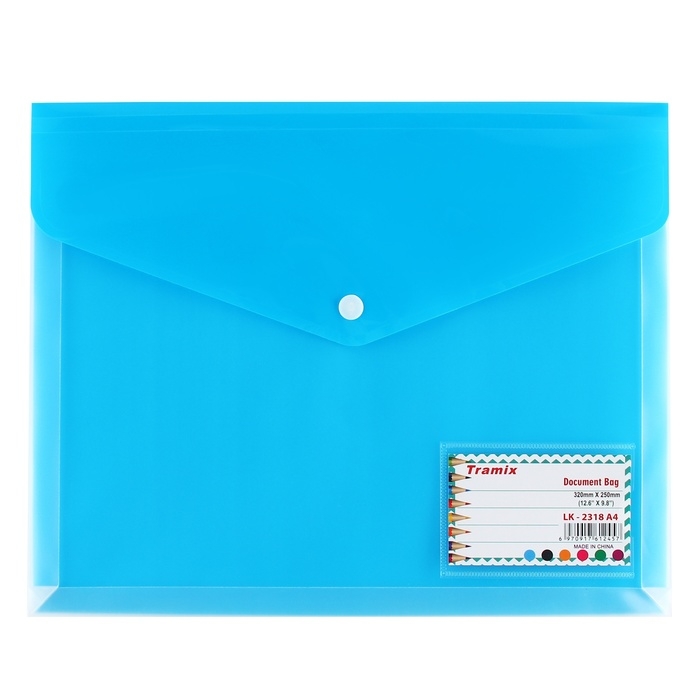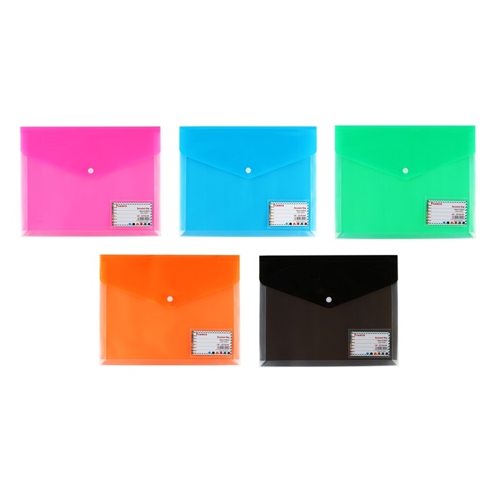 Папка-конверт на кнопке А4, 180 мкр, с расширением, карман для визиток, МИКС