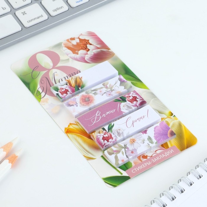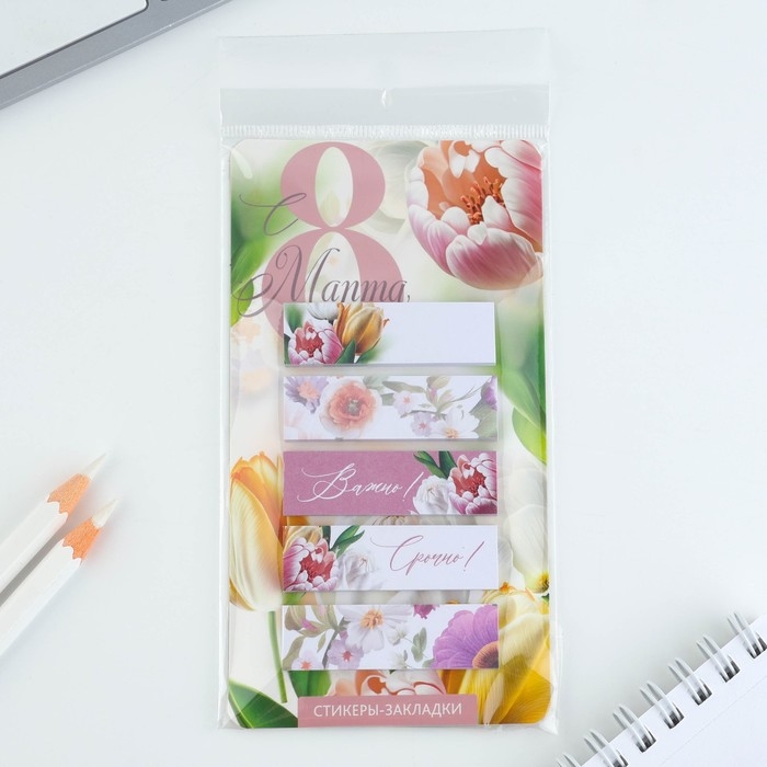 Стикеры-закладки, на подложке «С 8 Марта.Цветы», 5 шт, 30 л/шт