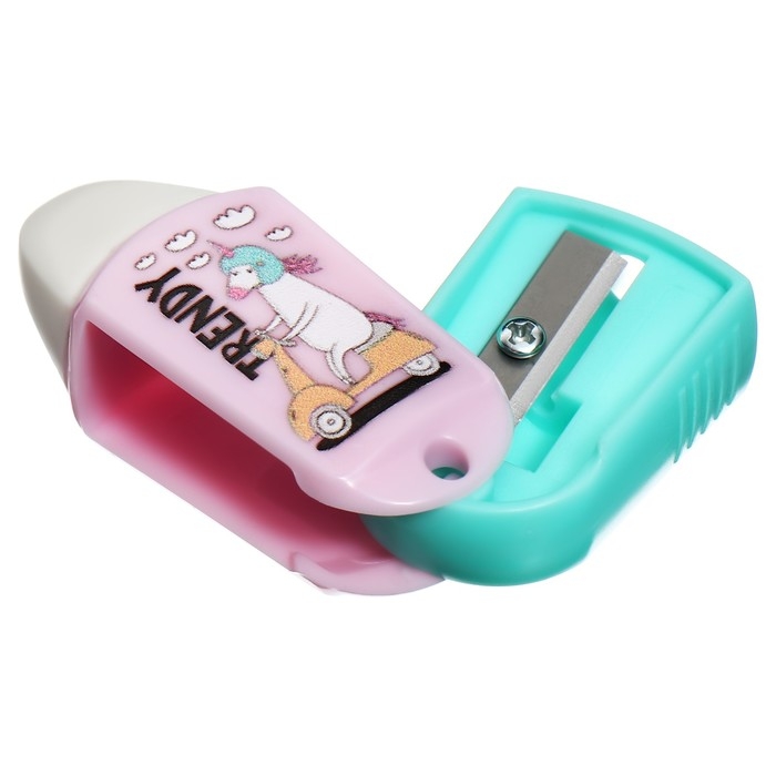 Точилка пластиковая с ластиком MESHU "Unicorn", 1 отверстие, МИКС
