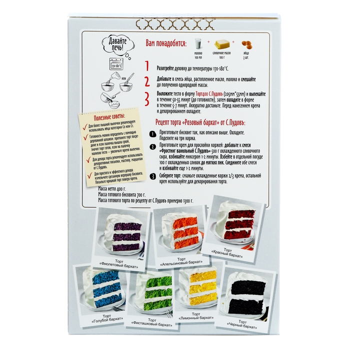 При создании торта «Розовый бархат» мы вдохновлялись передовыми трендами в мировом кондитерском искусстве. Яркий, привлекающий внимание торт с пористыми бисквитами, буквально тающими во рту, словно бы сделан в дорогой кондитерской. Ваши близкие и гости обязательно так подумают, когда его увидят на столе. При этом приготовить выпечку с гарантированным результатом сможет каждая хозяйка. Мы высчитали все пропорции ингредиентов, вам останется только объединить их, выложить готовое тесто в форму и испечь, согласно инструкции. Украсьте готовый торт ванильным фростингом от «С.Пудовъ» или своим любимым кремом.