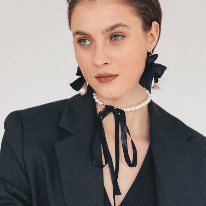 Чокер «Новый стиль» жемчужины с завязкой, цвет черно-белый 35 см