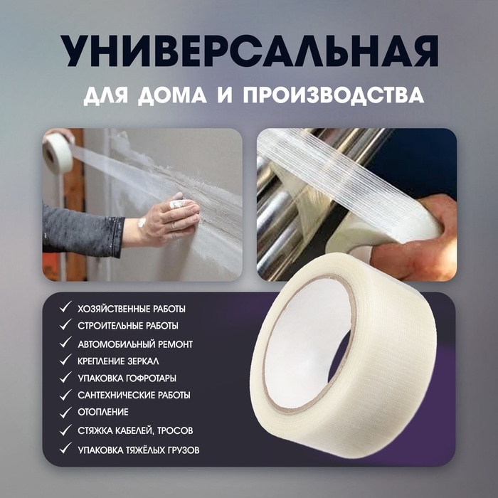 Лента армированная ТУНДРА, самоклеящаяся, прозрачная, 150 мкм, 48 мм x 25 м