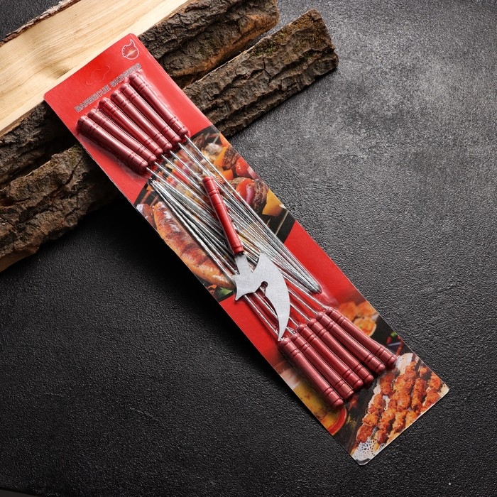 Набор шампуров-спиц 12 шт, с ножом, рабочая часть - 21 см, ширина - 2 мм, толщина - 2 мм
