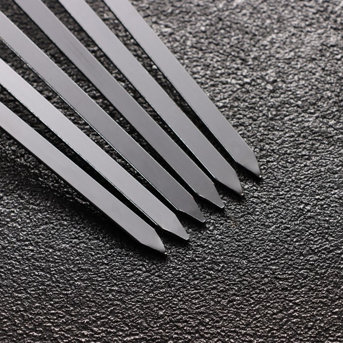 Набор предназначен для приготовления шашлыка: мяса, рыбы или овощей на открытом огне. Заостренные концы идеально нанизывают даже большие и жесткие куски мяса.