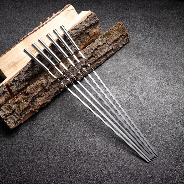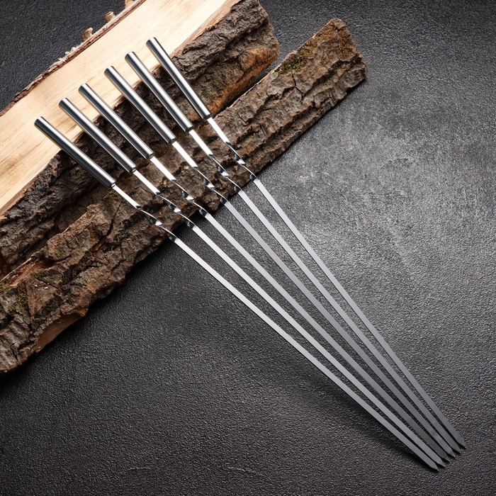 Набор шампуров 6 шт, рабочая часть - 32 см, ширина - 4 мм, толщина - 2 мм, с мет. ручкой