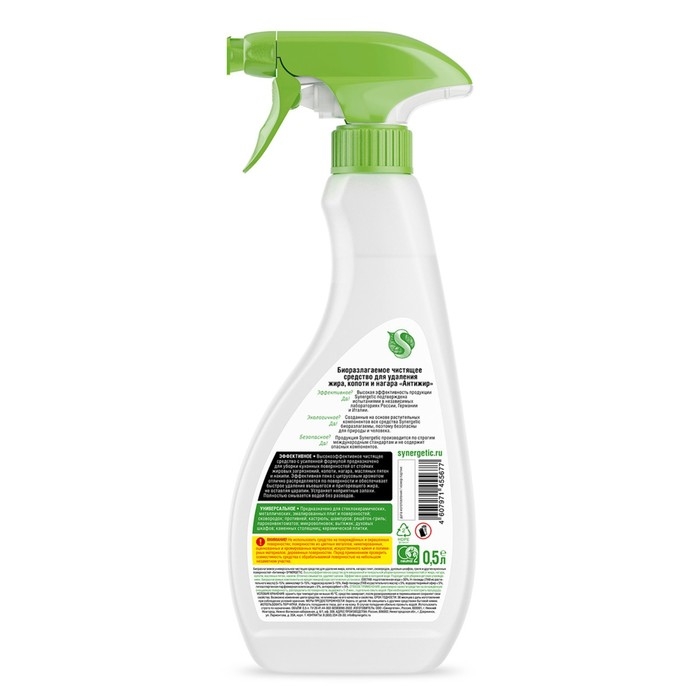 Средство чистящее SYNERGETIC для удаления жира, копоти и нагара Антижир,биоразлагаемое, 0,5 л
