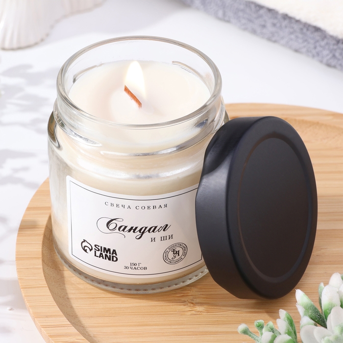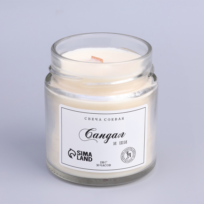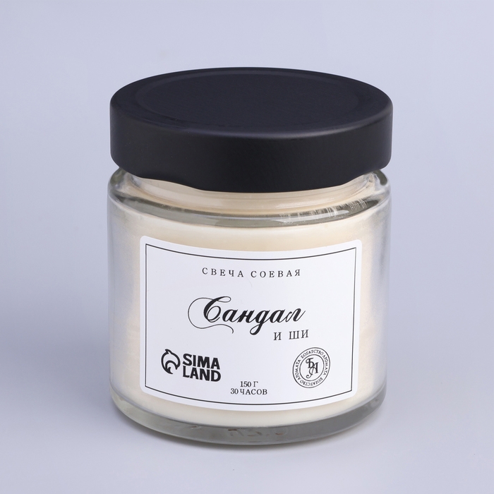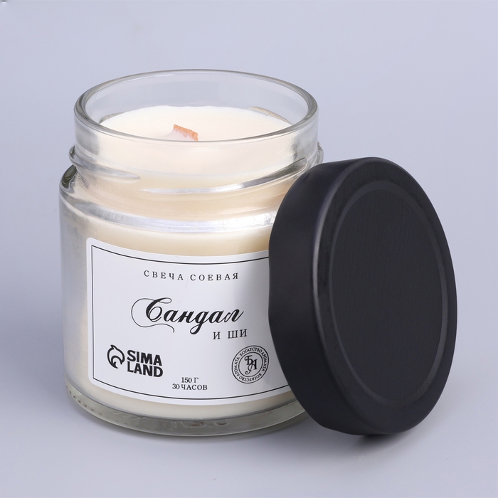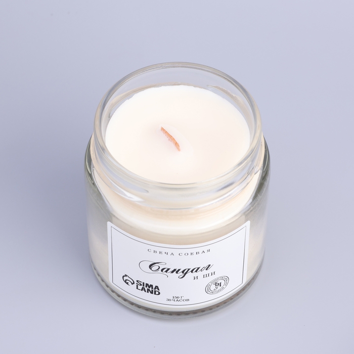 Свеча ароматическая из соевого воска в банке, 150 г, сандал и ши