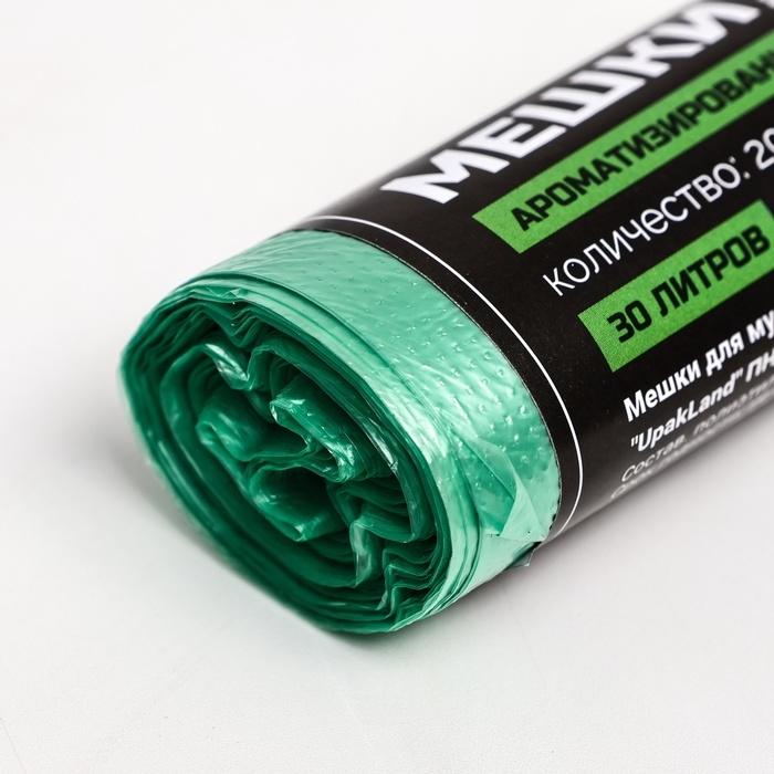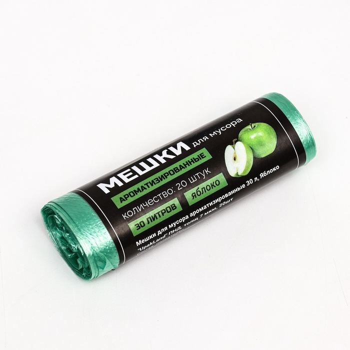 Мешки для мусора ароматизированные 30 л, Яблоко "UpakLand" ПНД, толщ 7 мкм, 20шт
