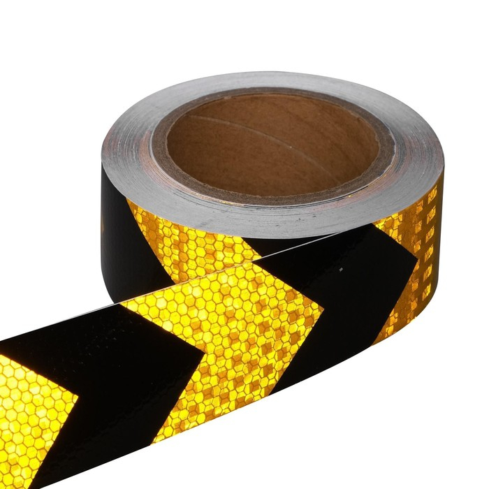 Светоотражающая лента, самоклеящаяся, черно-желтая, 5 см х 15 м