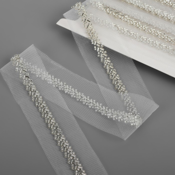 Тесьма декоративная с бисером, 35 мм, 4,5 ± 0,5 м, цвет белый