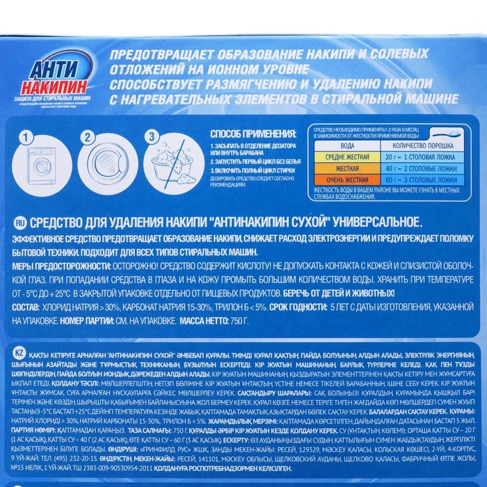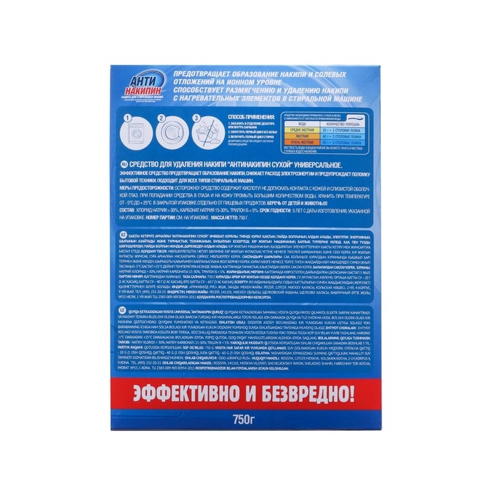 Средство для удаления накипи-Антинакипин. Эффективное средство предотвращает образование накипи, снижает расход электроэнергии и предупреждает поломку бытовой техники. Подходит для всех типов стиральных машин.