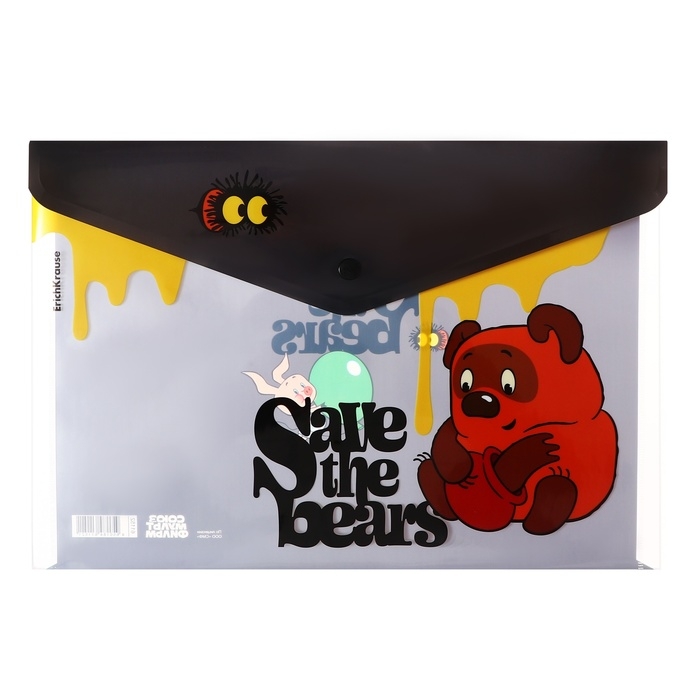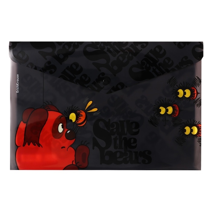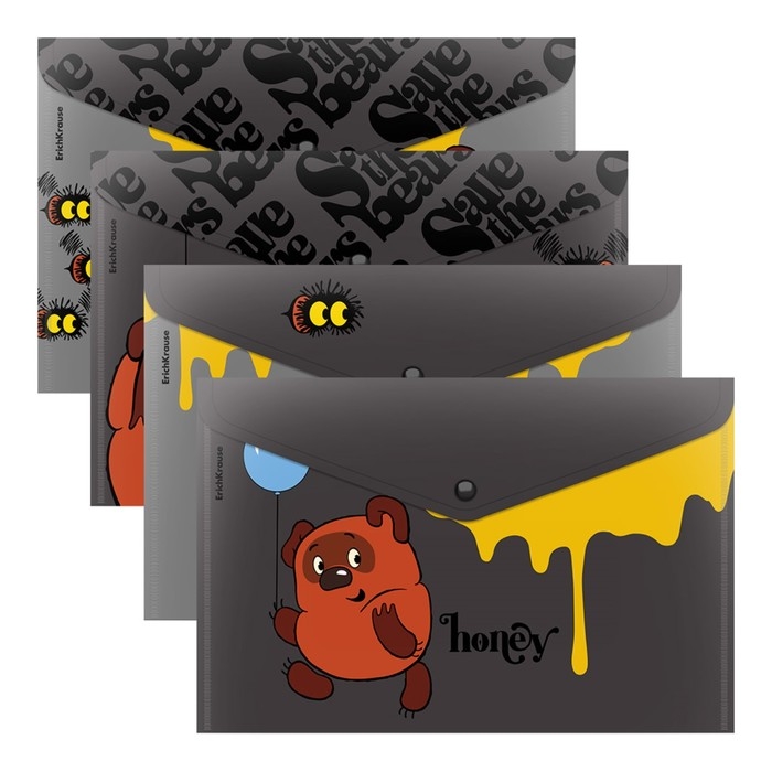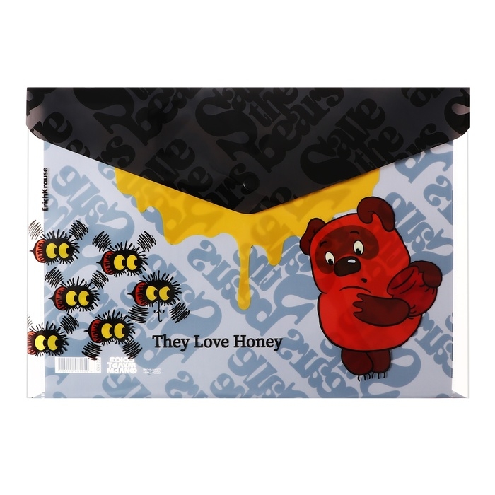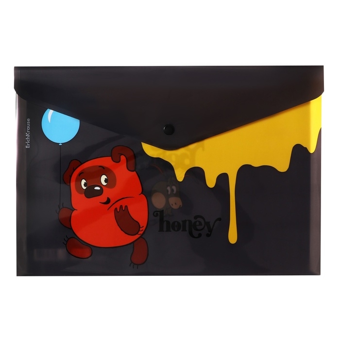 Папка-конверт на кнопке А4, 160 мкм, ErichKrause "Винни-Пух", полупрозрачная, глянцевая, микс