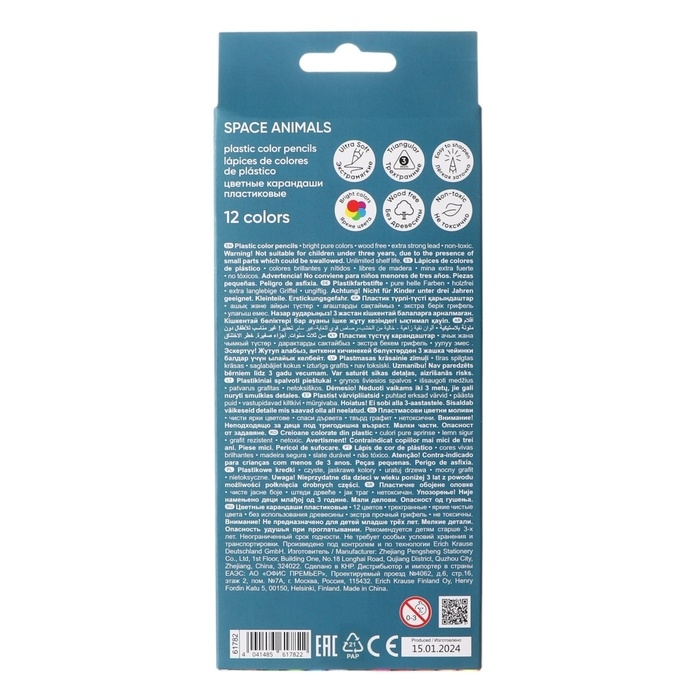 Карандаши 12 цветов ErichKrause Kids Space Animals трехгранные, пластиковые с европодвесом