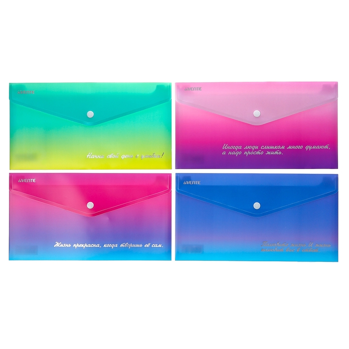 Папка-конверт на кнопке Travel, 260 х 140мм, 180мкм, deVENTE Degrade, 3071322, МИКС