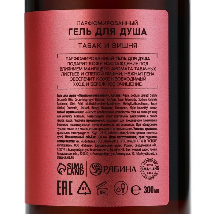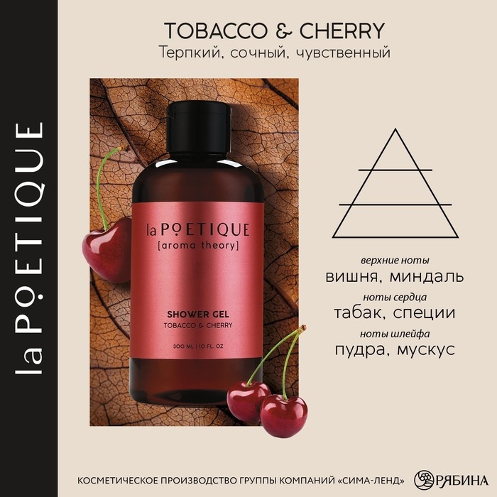 Гель для душа женский, 300 мл, аромат табака и вишни, LA POETIQUE