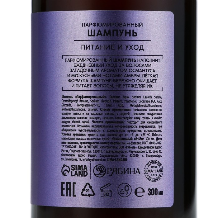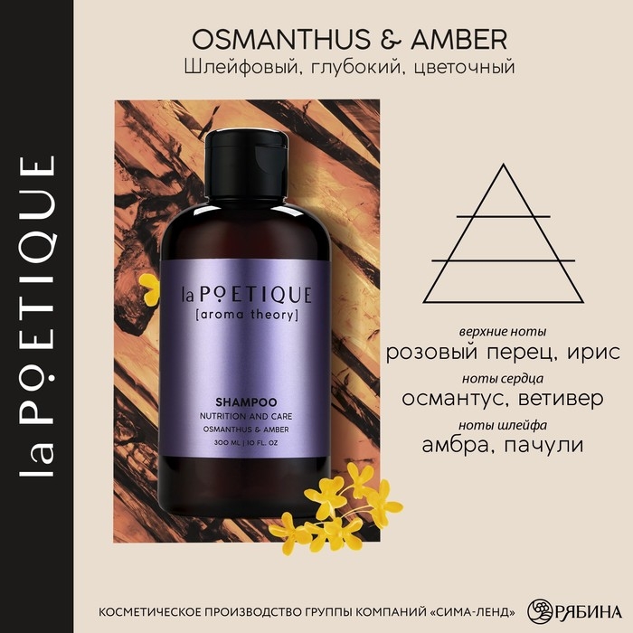 Шампунь для волос, питание и уход, 300 мл, аромат османтуса и амбры, LA POETIQUE