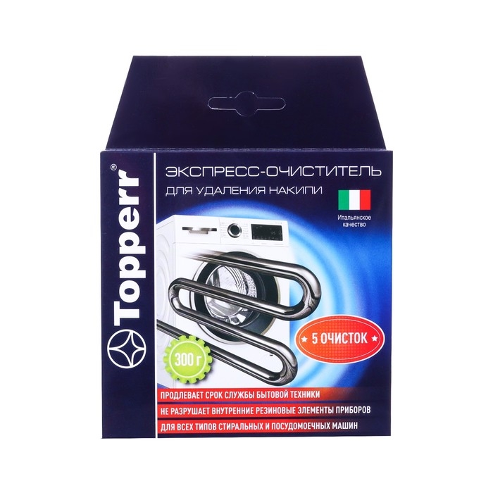 Достаточно всего лишь одного применения, чтобы увидеть заметное улучшение работы ваших устройств. Объем упаковки составляет 300 г, что делает его практичным и экономичным выбором для регулярного использования. Экспресс-очиститель Topperr от накипи в стиральных и ПМ машинах — это простой и надежный способ поддерживать ваши приборы в идеальном состоянии.