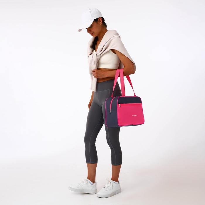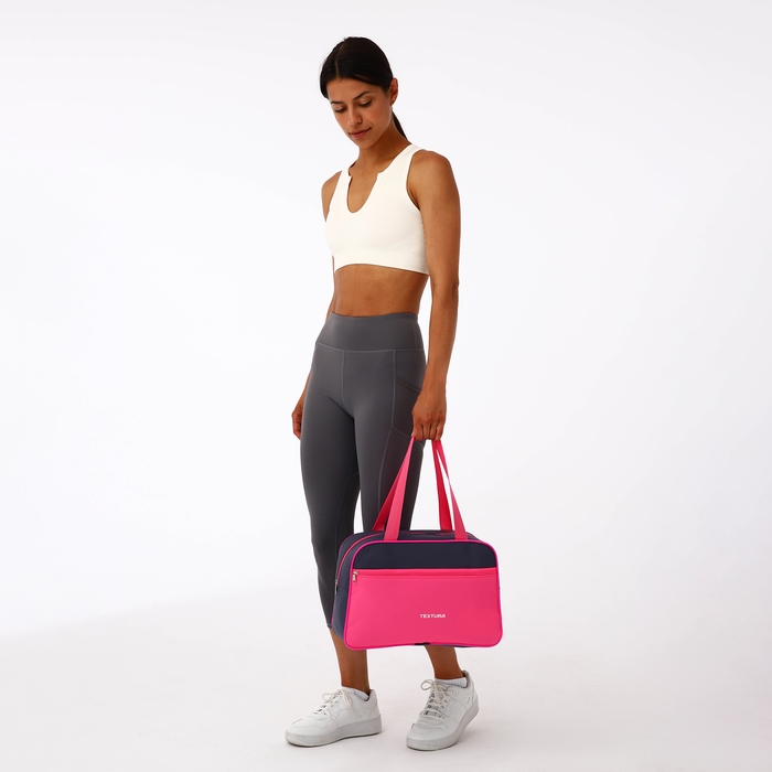 Сумка спортивная женская, TEXTURA, маленький размер, цвет серый/розовый