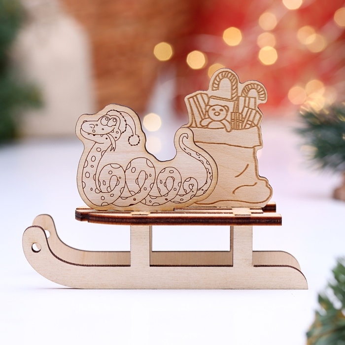 Сувенир символ года санки "Змея с мешком подарков", вид 4, 9,8 х 4,7 х 7,7 см