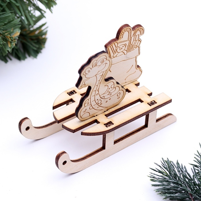 Сувенир символ года санки "Змея с мешком подарков", вид 6, 9,8 х 4,7 х 7,7 см