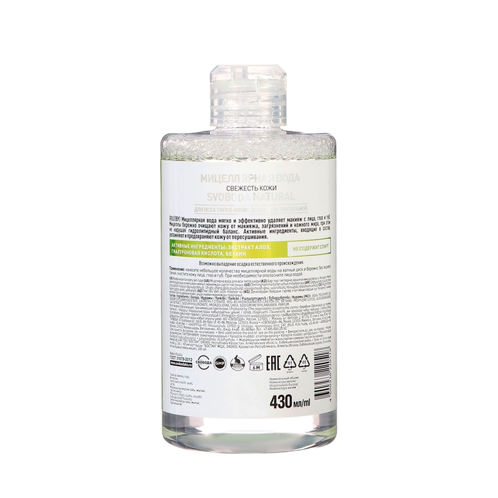 Мицеллярная вода SVOBODA свежесть кожи, 430 мл
