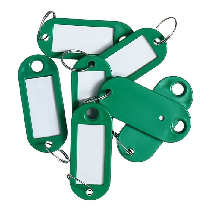 Брелоки для ключей с информационным окном и бумажной вставкой для пометок. Размер брелока 52 х 23 мм, размер окна 36 х 18мм – предназначен для нанесения маркировки. Защитная пленка размером 18 х 36 мм из прозрачного полиэтилена служит для предохранения бумажной вкладки. Материал - мягкий пластик. Упаковка по 10 штук, цвет - зеленый. Корпус изготовлен из гибкого пластика, что увеличивает срок службы брелока для ключей.