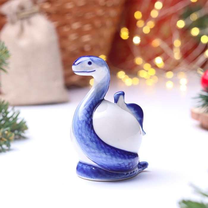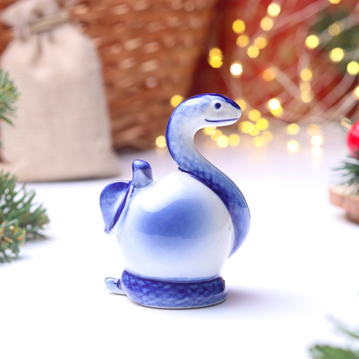 Новый год. Сувенир символ года "Змей Гоша", гжель, цвет, 4 см