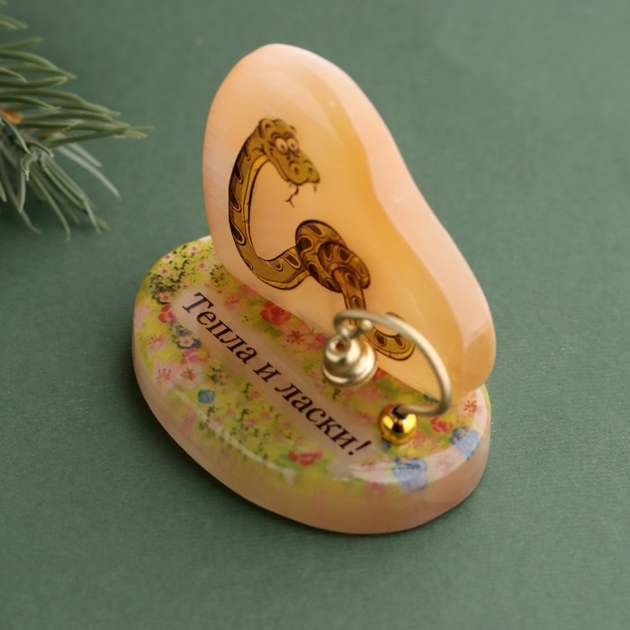 Сувенир "Тепла и ласки! 2025", с колокольчиком, селенит, 6х6х4,5 см