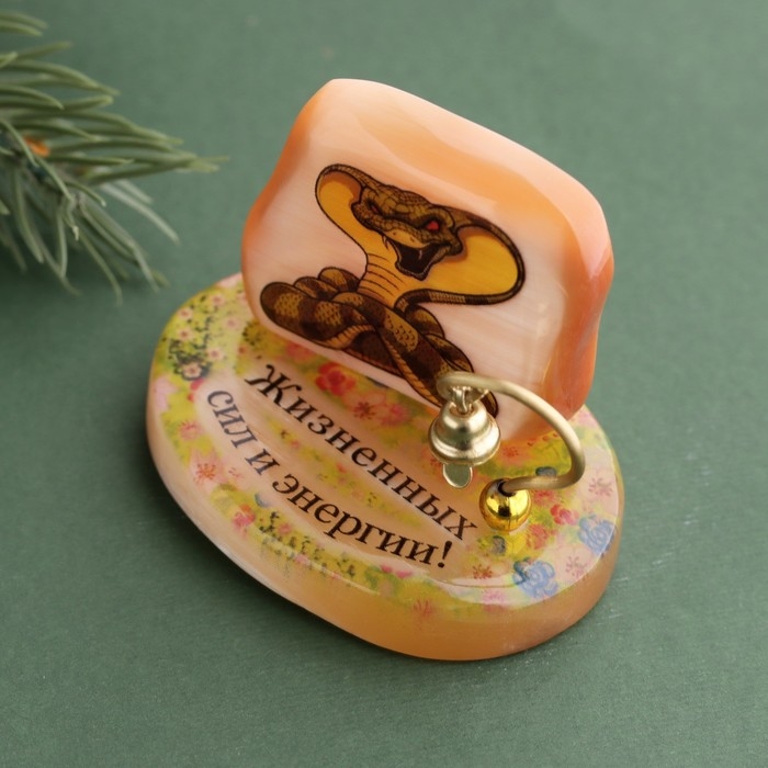 Сувенир "Жизненных сил и энергии! 2025", с колокольчиком, селенит, 6х6х4,5 см