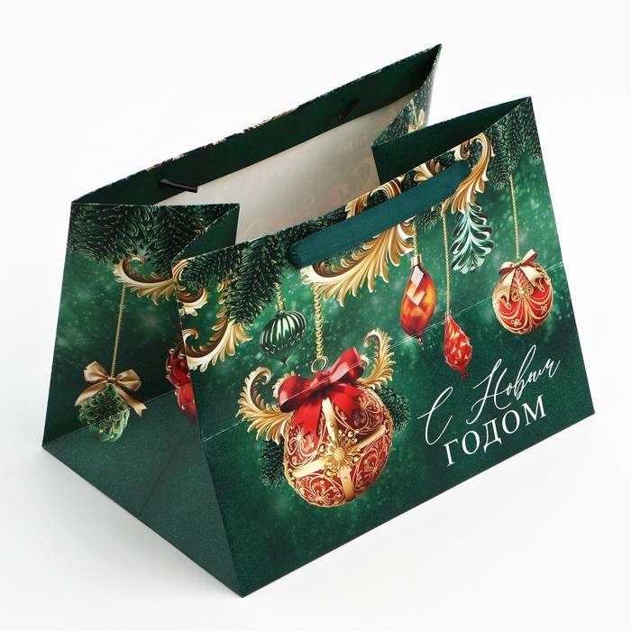 Пакет подарочный новогодний с широким дном «С Новым годом», 25 х 19 х 18 см