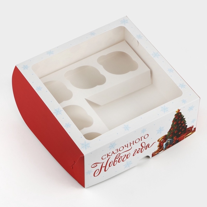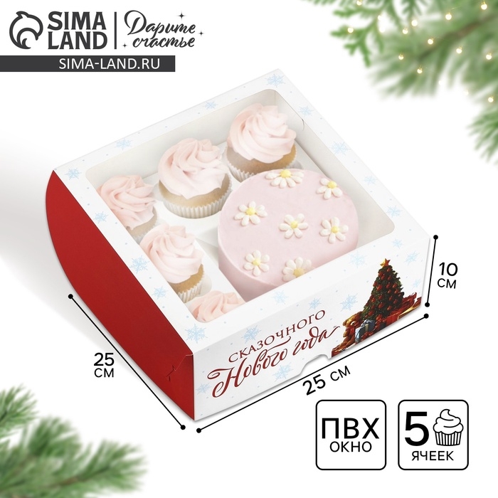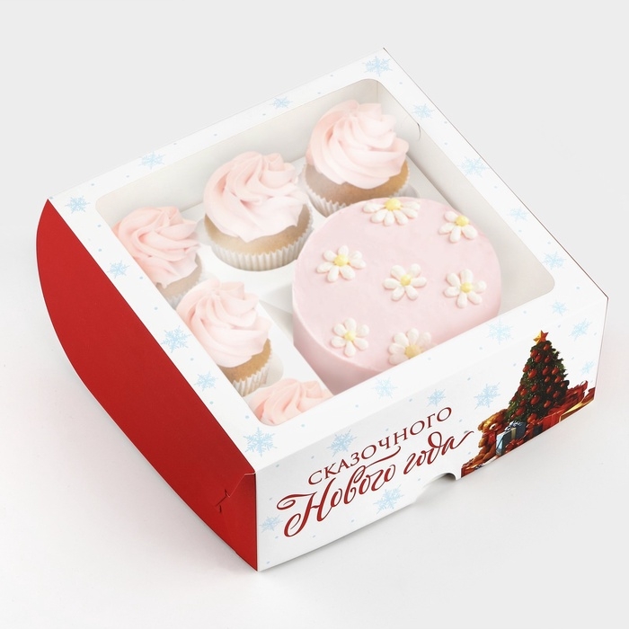 Коробка для капкейков и бенто-торта «Сказочного Нового года» 25 х 25 х 10 см
