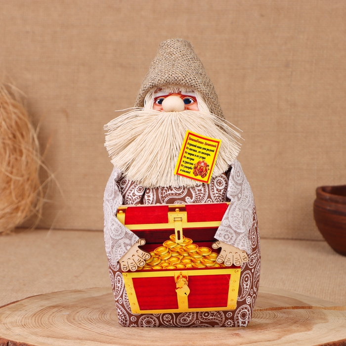 Домовой "Афанасий с сундуком", 22х15х12 см