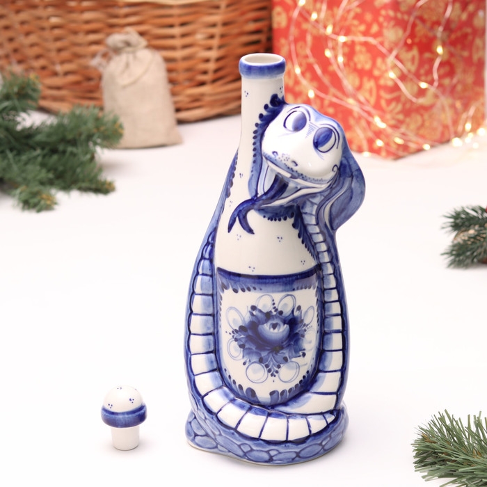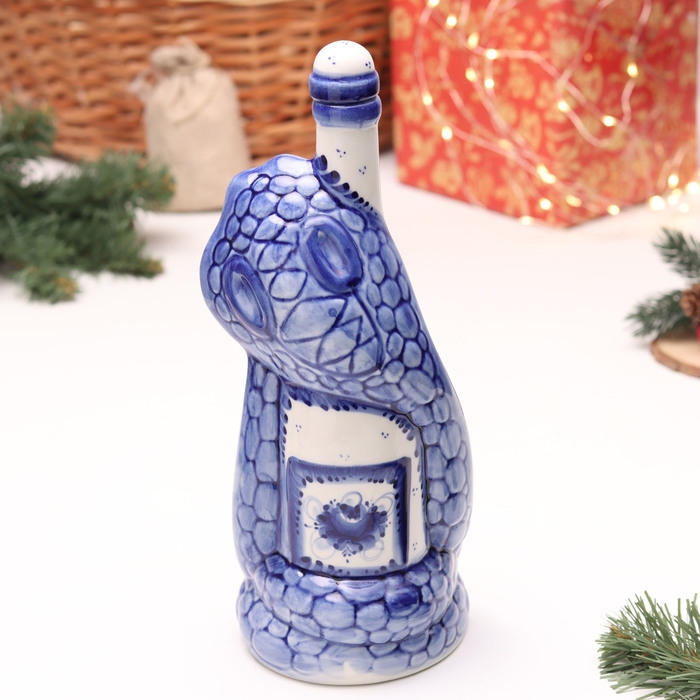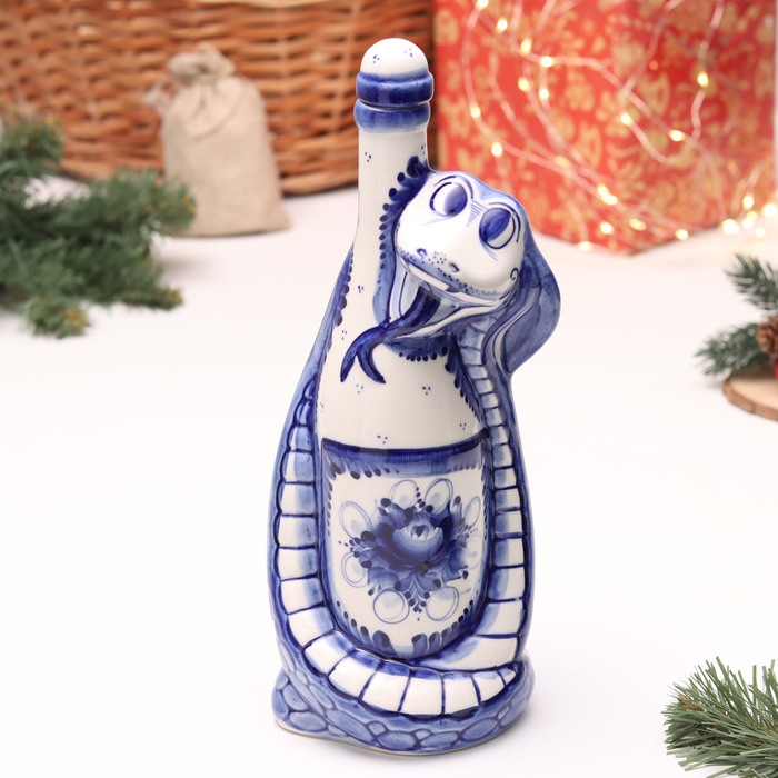Штоф символ года "Змея", 28 см, 500 мл, гжель, авт. Гаврилов